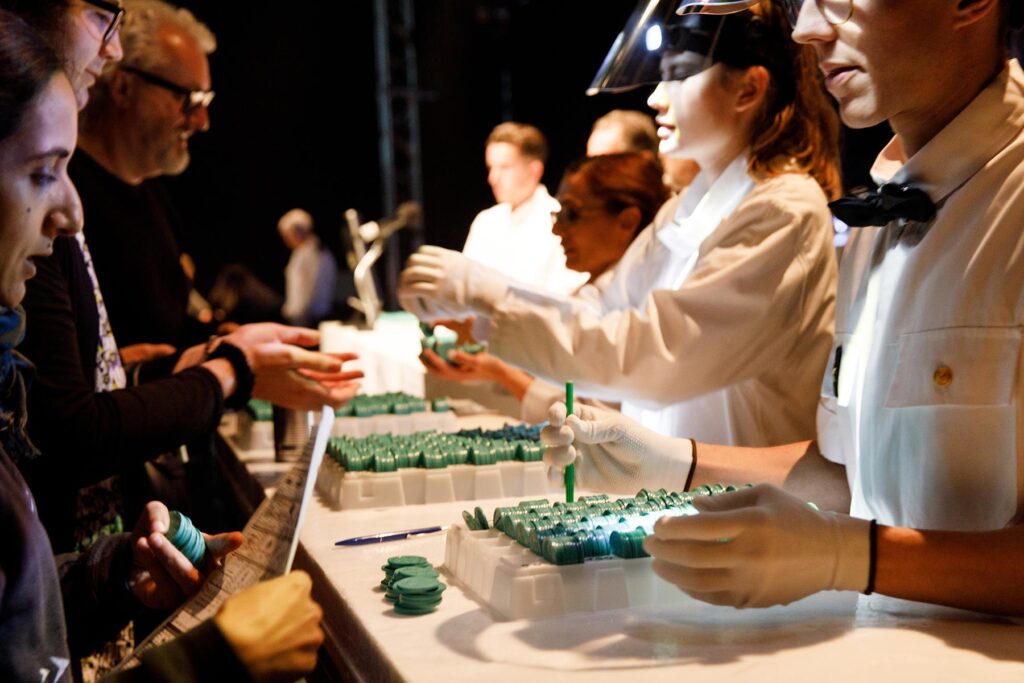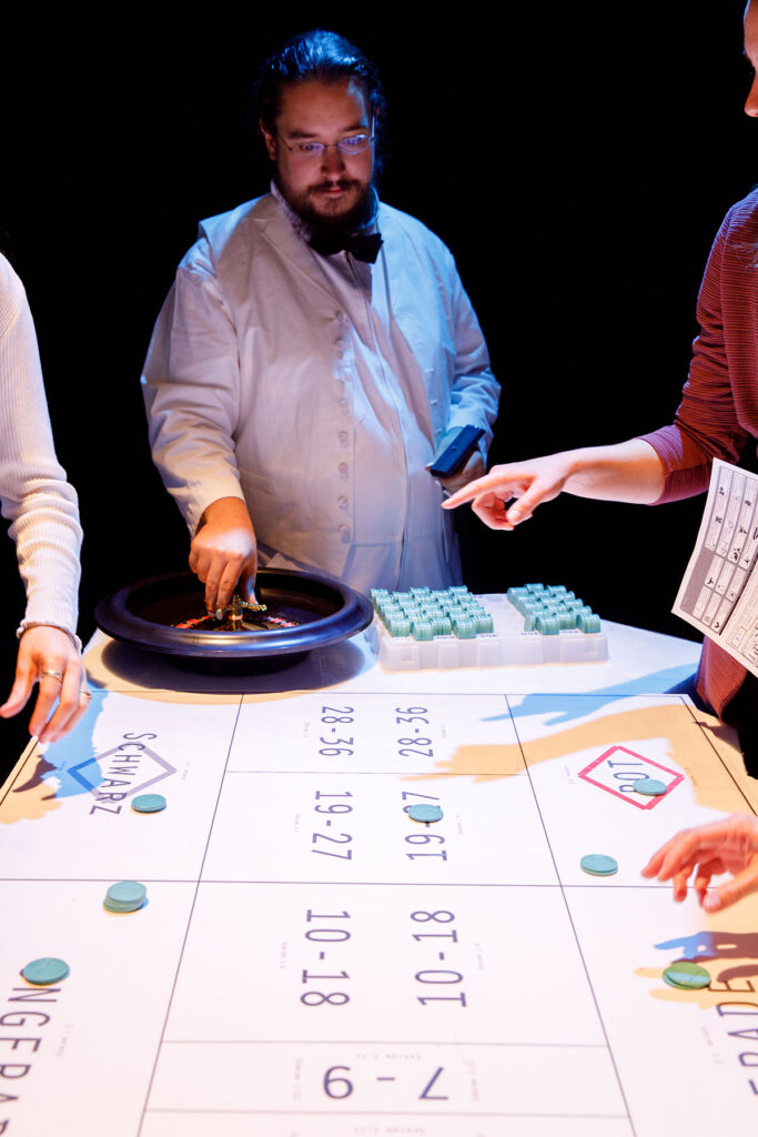 „Volkstheater-Projekt „Casino Global“ im Staatstheater vermittelt spielerisch die Wucht des Wandels. Vom Klimawandel wissen ist das eine, dagegen handeln das andere.1970 Chips lassen sich die insgesamt 46 Teilnehmer für ihre analytisch berechnete Ressourcen-Verschwendung auszahlen und haben im Spiel-Raum dieses performativen Projekts sprichwörtlich die Wahl. Ziemlich clever mutet dabei an, dass Talamonti sein „interaktives Spielesetting“ kaum moderiert und die Verbraucher so genau das sein lässt, was sie sind: sie selbst. Noch mag das „Casino Global“ nur ein Spiel um die eigene Zukunft sein – doch wenn das Umdenken nicht einsetzt und die Doppelmoral nicht aufhört, könnte das traurige Finale dieser Premiere bald hässliche Realität werden. Zeit, zu handeln.“