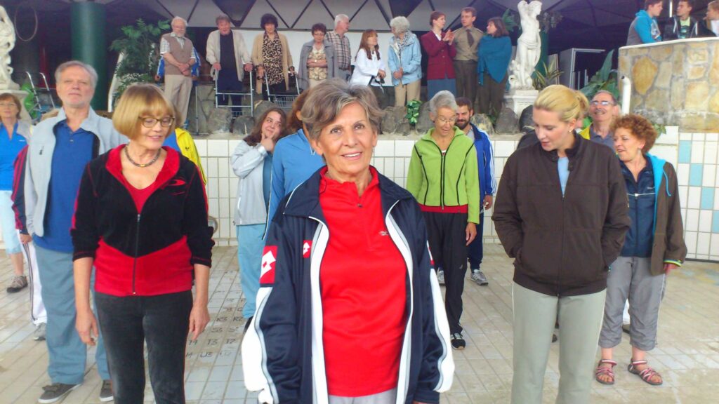 „….Entschuldigung, hab ich vergessen, gleich gibt es draußen die Eröffnung des Festes durch das Festkomitee, dann der Kinderchor der Musikschule „Hoppla wir leben“ dann der Formationstanz 60+, das Märchenspiel der Spielfrüchtchen mit den Tieren und dem Gemüse, danach Jazz am späten Mittag mit der Ein-Mann-Soundmachine Kai Kruschel, Eröffnung des Kuchenbasars, das FitnessQuiz, Silver Gaming Spiele für Jung und Alt mit Zaubertricks, Ernährungstipps und Chiquibum, „Sturzprophylaxe – was ist neu?“ und zum Abschluss der „Nacht der Genüsse“: Andacht mit Pfarrerin Altenhausen und Ausklang mit Tanz, Musik und Massage zum Thema Heimat. Und ich erwarte schon, dass Sie sich da einbringen. Und dann wünsch Ihnen noch viel Spaß und wenn Sie was brauchen, sagen Sie Bescheid….“